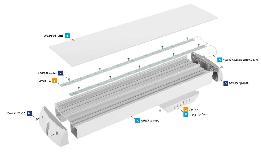 Универсальный светодиодный светильник общего назначения LuxON Box. Прибор для замены светильников типа ЛВО, СдБО, для применения в крупных коридорах, основного освещения в офисах, складах и на всех объектах, где не требуется высокого уровня защиты от внешних воздействий влаги и пыли. Отличается компактными габаритными размерами — 473×116,5×45,5 мм и 893×116,5×45,5 мм (версия Box Long), выполнен только из высококачественных материалов.